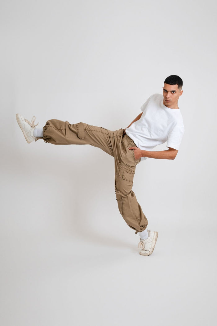 BEIGE CARGO SET - ADJUSTABLE FLARE PANTS - MEN